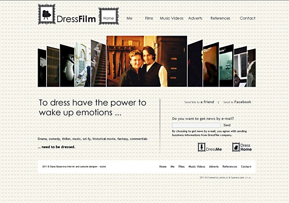 Internetová prezentace Dress...Prezentace úspěšné kostýmní designerky Celkový návrh grafického vzhledu i systému website, jednotlivé grafické prvky, návrh textů, plnění webu. Technické zázemí ve spolupráci se Spaneco spol. s r.o. (redakční systém Pluto)